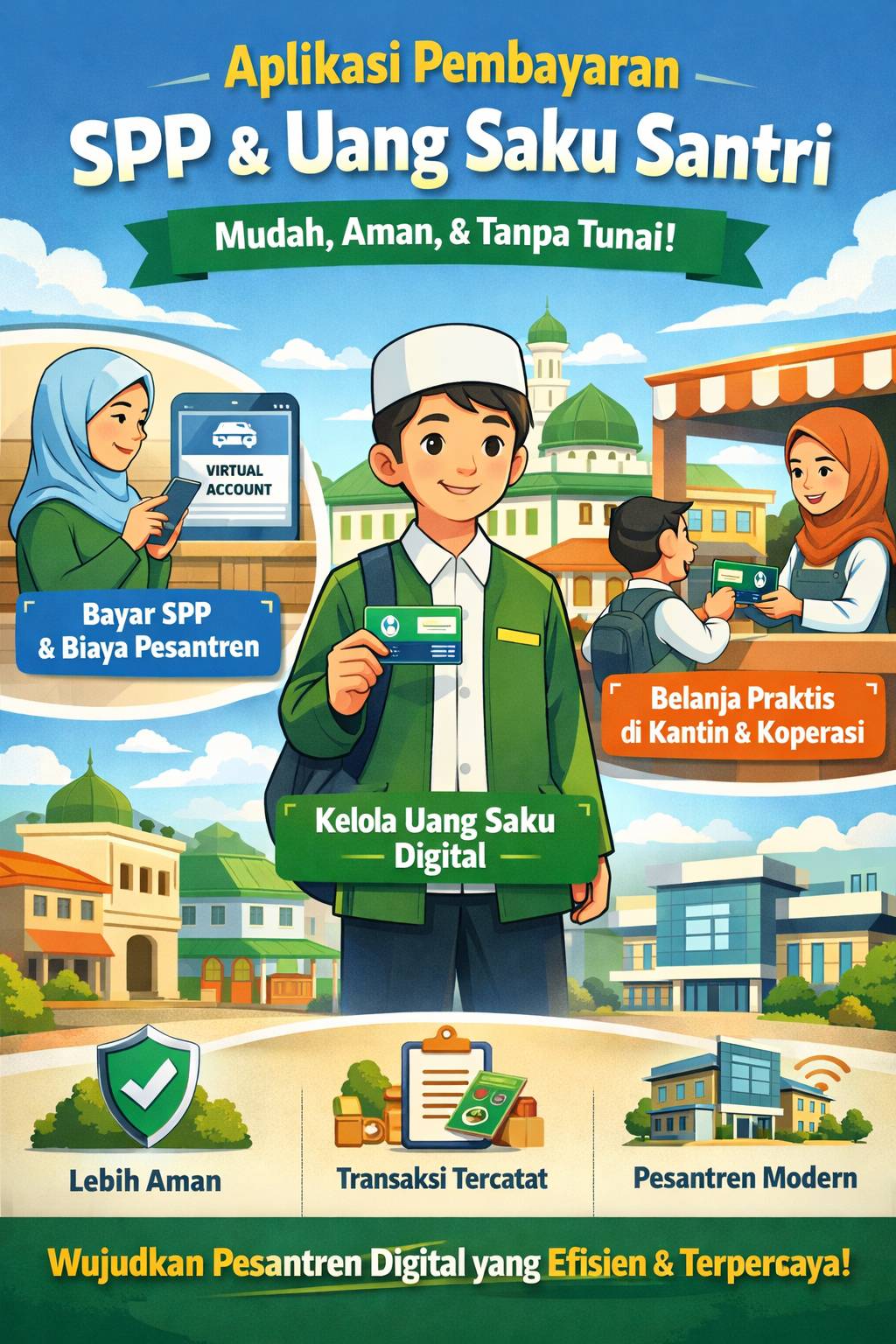 Dalam hal inilah, pemanfaatan teknologi digital menjadi kebutuhan yang tidak terelakkan. Aplikasi Pembayaran SPP dan Uang Saku Santri hadir sebagai solusi untuk meningkatkan efisiensi, transparansi, dan keamanan pengelolaan keuangan pesantren. Aplikasi ini tidak sekadar alat pembayaran, tetapi sebuah sistem terintegrasi yang mendukung tata kelola administrasi pesantren secara modern, akuntabel, dan berkelanjutan.
